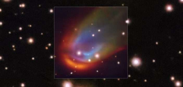 Невообичаениот ударен бран околу белото џуџе RXJ0528+2838 снимен со помош на ESO инструменти. Шарените нијанси откриваат присуство на јонизиран водород, кислород и азот.